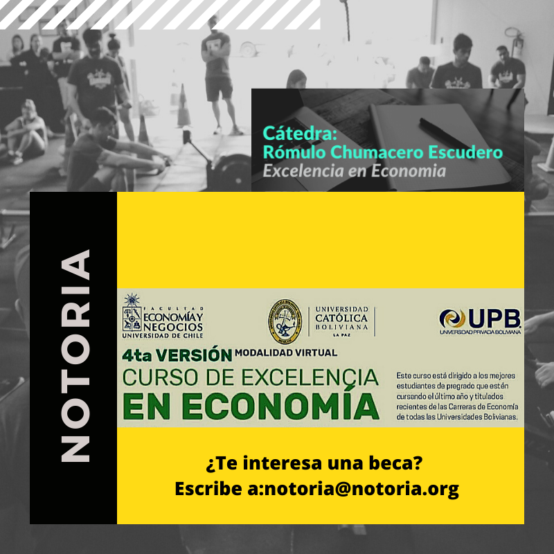 Notoria y la cátedra del Dr. Rómulo Chumacero Escudero promueven la excelencia académica. Promueve y difunde el Curso de Excelencia en Economía (CEE) para alumnos y profesionales bolivianos.